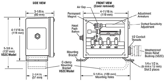 VS2系列非常適合用于發動機、泵、壓縮機、熱交換器和泵送裝置,可用于需要停機保護免受破壞性沖擊/振動的場合。開關可根據每種應用所需的靈敏度進行現場調節。
